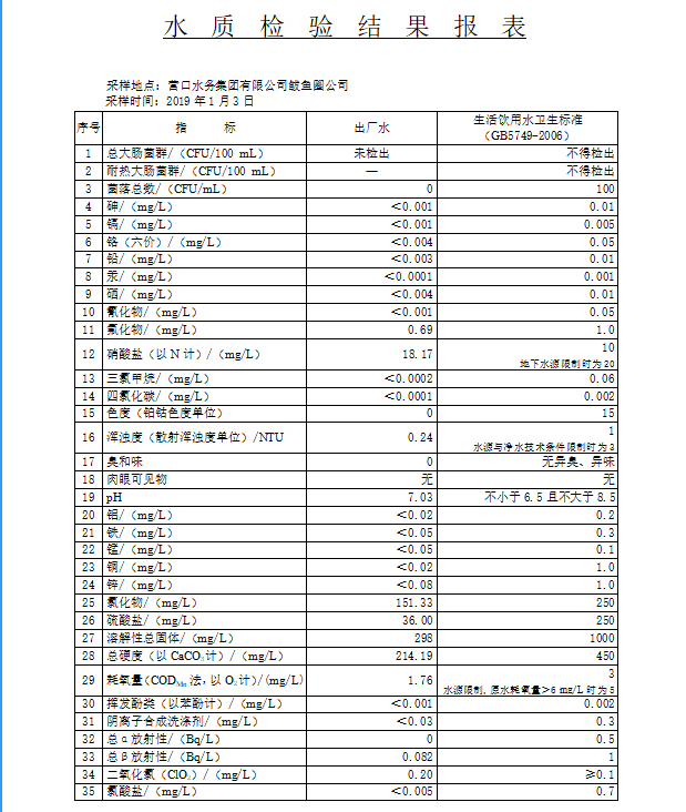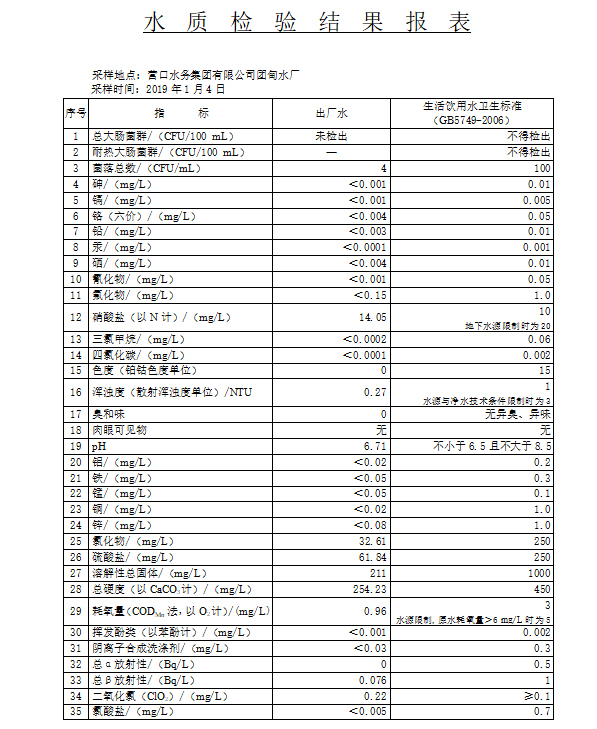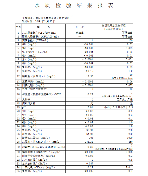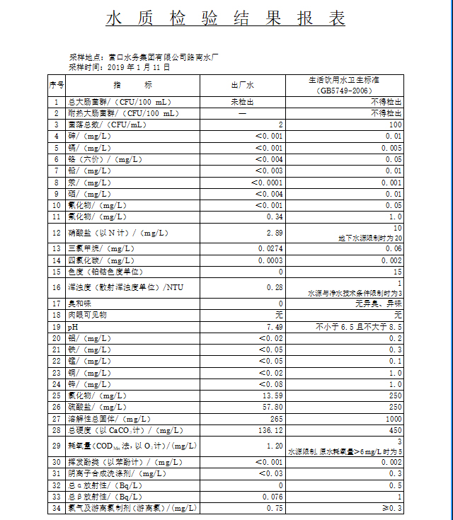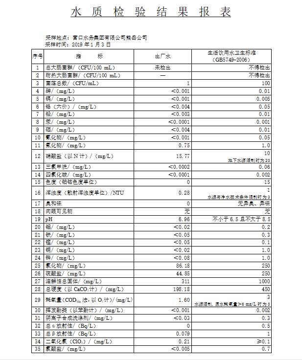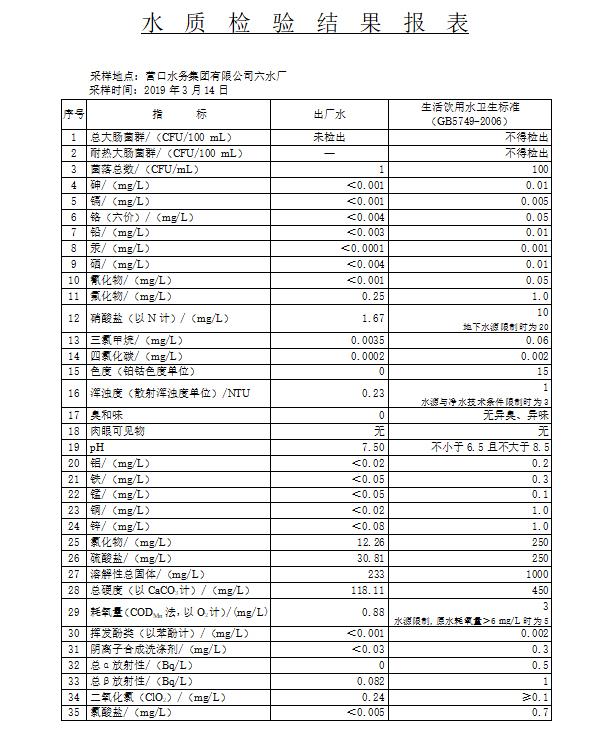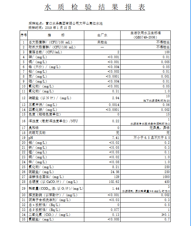 2019年1季度水質(zhì)公示報(bào)告