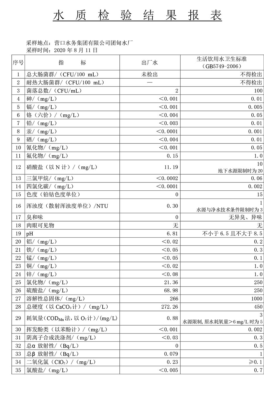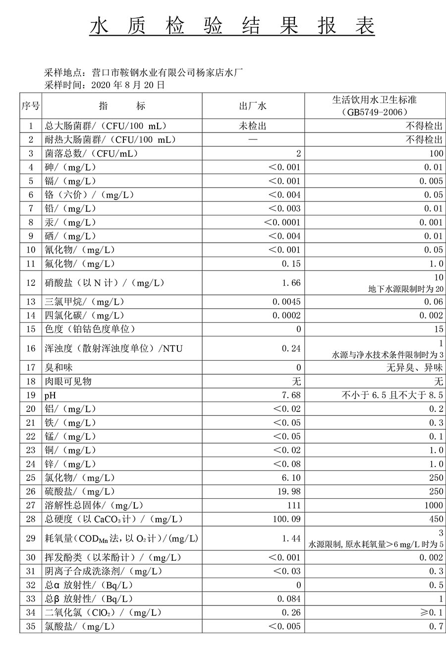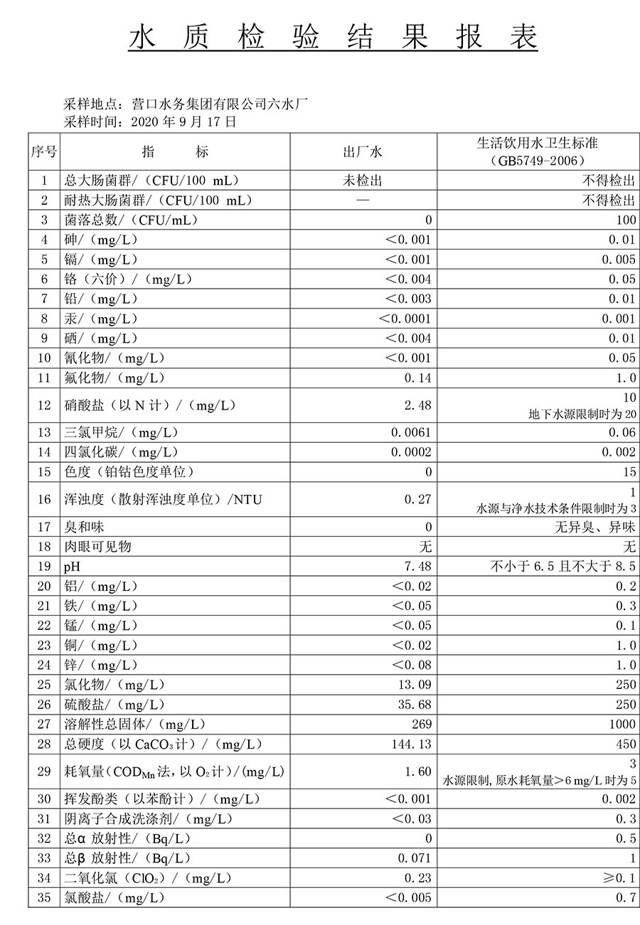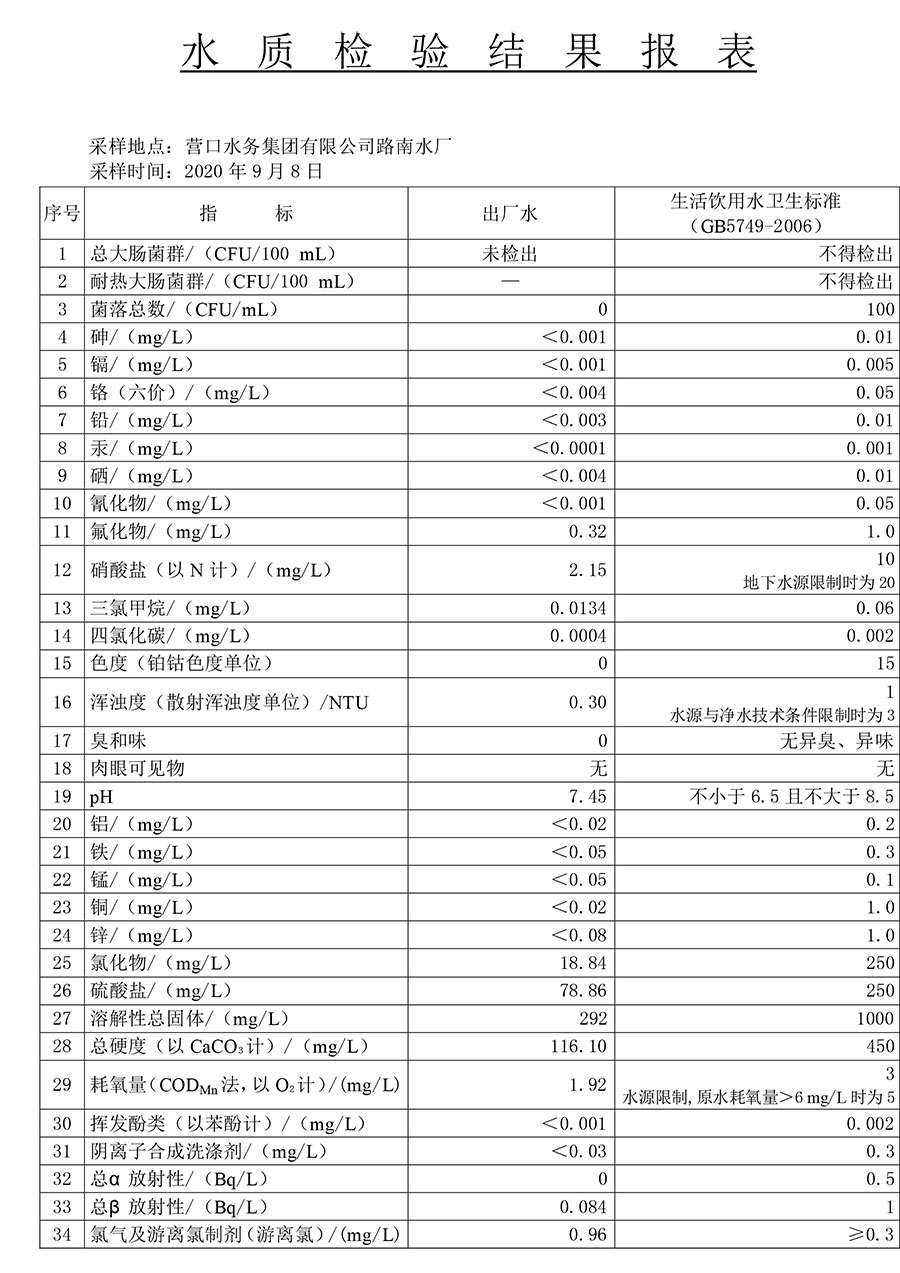 2020年3季度水質(zhì)公示報(bào)告