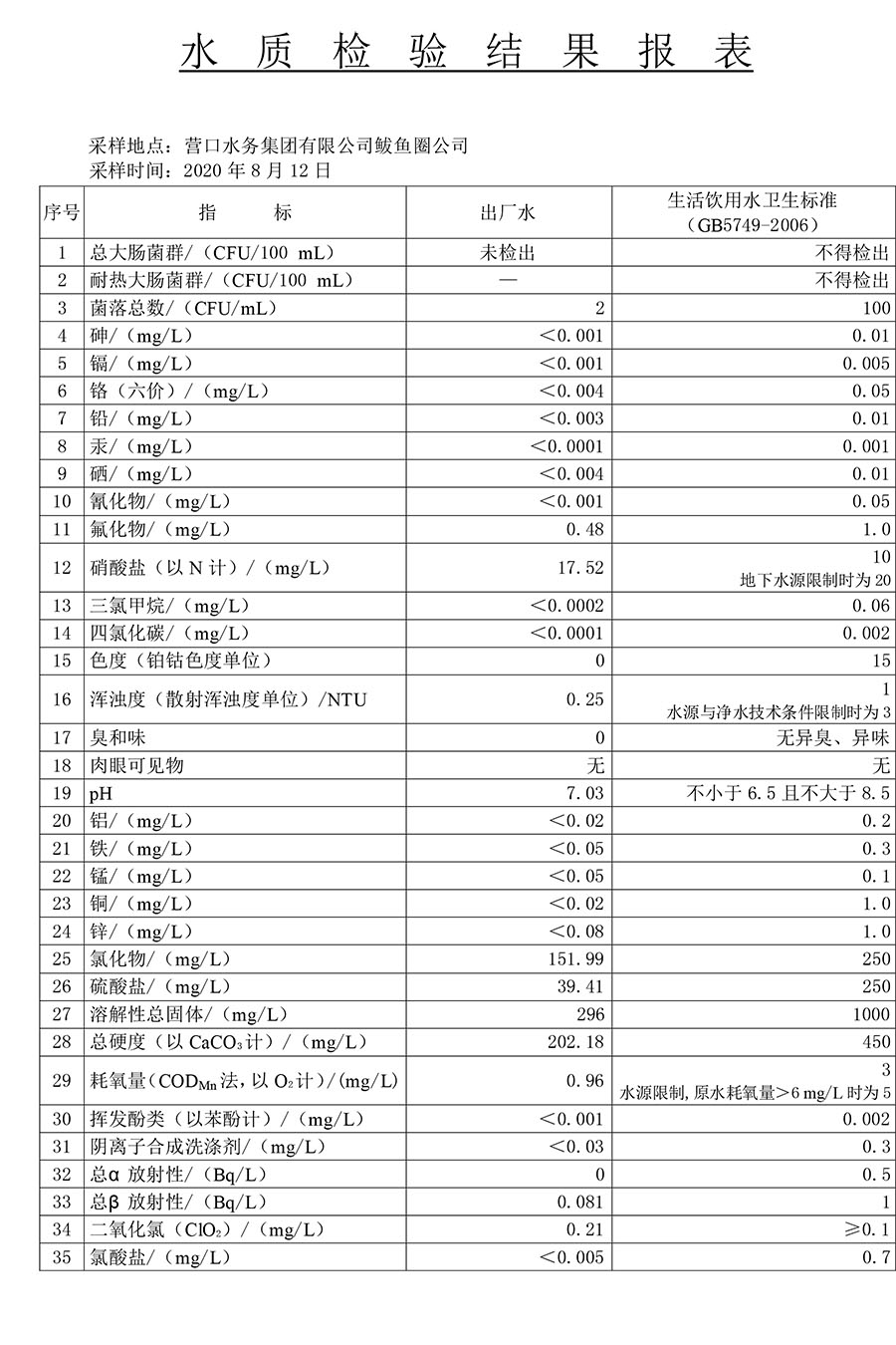 水質(zhì)報(bào)告