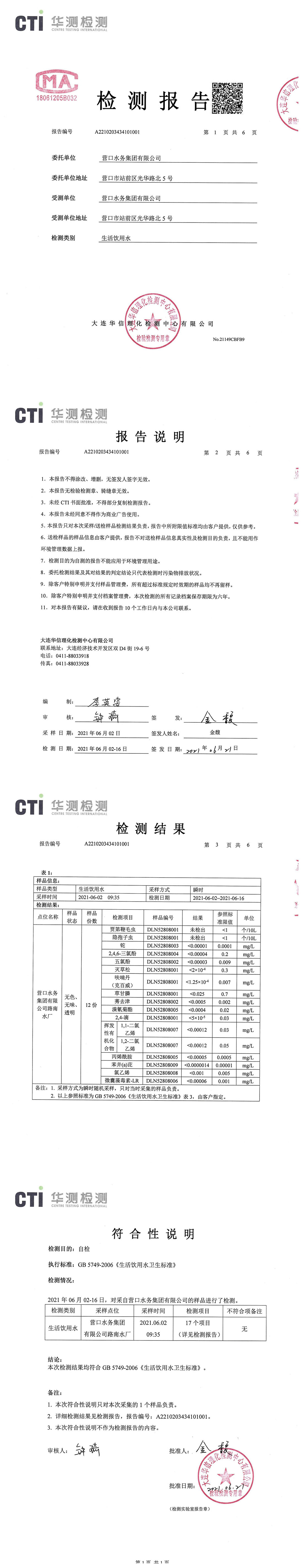 2021年2季度水質(zhì)公示報(bào)告