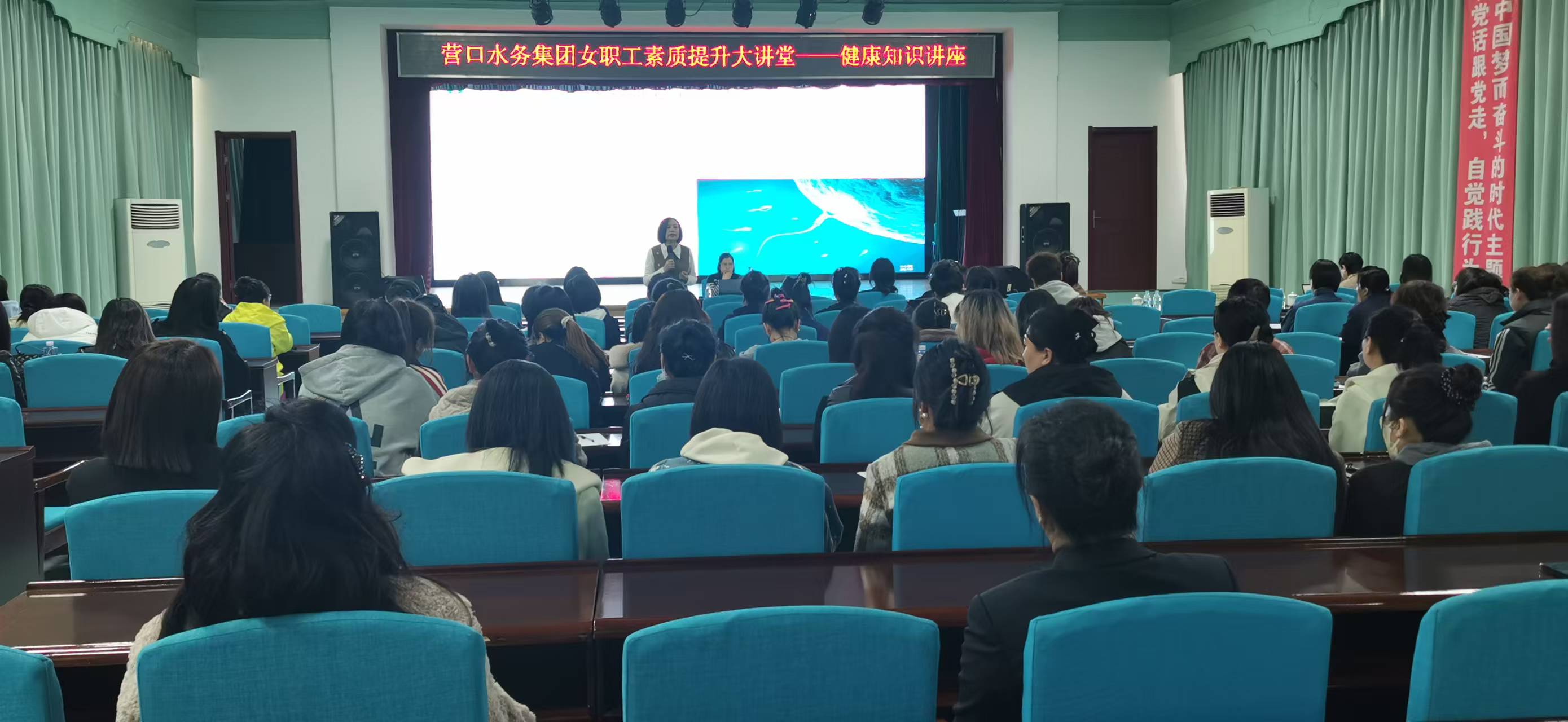 為進(jìn)一步推進(jìn)集團(tuán)女職工素質(zhì)提升工程,關(guān)愛(ài)廣大女職工的身心健康,增強(qiáng)女職工預(yù)防疾病的意識(shí)和能力,水務(wù)集團(tuán)工會(huì)深入開展“營(yíng)口工人大思政課”——暨女職工素質(zhì)提升大講堂活動(dòng),于3月28日下午,在三樓大會(huì)議室,組織了專場(chǎng)女職工健康知識(shí)講座,集團(tuán)150余名女職工參加了活動(dòng)。